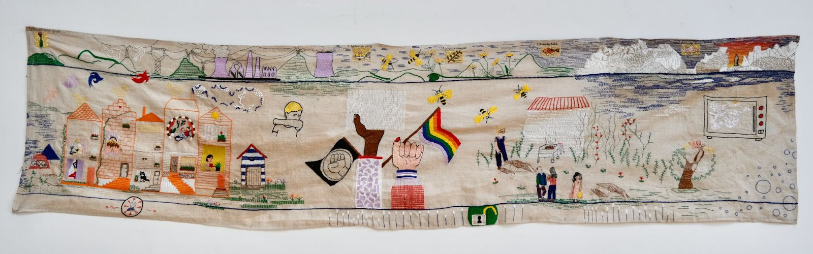 A l’instar de la célèbre Tapisserie de Bayeux, cette épopée brodée raconte les événements majeurs de l’année 2020, cette année si bouleversante qui reste gravée dans tous les esprits.